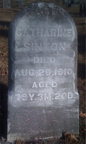 United States Census, 1860 Name: Catherine Sinton Residence: , Northumberland, Pennsylvania Ward: Coal Township Age: 29 years Estimated Birth Year: 1831 Birthplace: Pennsylvania Gender: Female Page: 109 Family Number: 760 Film Number: 805149 DGS Number: 4292167 Image Number: 00097 NARA Number: M653 [RFSS Aug 2011] United States Census, 1 June 1900 Name: Catherine Sinton Event Type: Census Event Year: 1900 Event Place: Monroe Township, Kosciusko, Indiana, United States Gender: Female Age: 69 Marital Status: Widowed Race: White Race (Original): W Relationship to Head of Household: Head Relationship to Head of Household (Original): Head Number of Living Children: 6 Birth Date: May 1831 Birthplace: Pennsylvania Father's Birthplace: Pennsylvania Mother's Birthplace: Pennsylvania Mother of how many children: 12 District: 54 Sheet Number and Letter: 3B Household ID: 69 Line Number: 84 Affiliate Name: The U.S. National Archives and Records Administration (NARA) Affiliate Publication Number: T623 GS Film Number: 1240382 Digital Folder Number: 004118625 Image Number: 00554