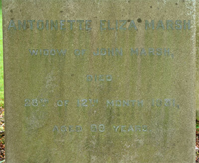 Groom's Name: John Marsh Bride's Name: Antoinette E. Jackson Marriage Date: 4 Sep 1873 Marriage Place: National Register Of Quakers, , , Ireland Registration District: Banbridge Registration Year: 1873 Volume Number: 11 Page Number: 253 Index Number: 32 [RFSS Jul 2011] |
