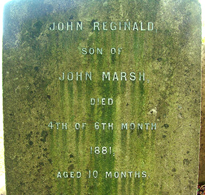 Name: John Reginald Marsh Gender: Male Birth Date: 21 Jul 1880 Birthplace: Belfast, Antrim, Ireland Father's Name: John Marsh Mother's Name: Antoinette Eliza Jackson Marsh Volume Number: 1 Page Number: 220 [RFSS Apr 2014] Ireland, Civil Registration Death Indexes Name: John Reginald Marsh Event Date: Apr - Jun 1881 Event Place: Newtownards, Ireland Age: 0 Birth Year (Estimated): 1881 Registration District: Newtownards Registration Quarter and Year: Apr - Jun 1881 Volume Number: 1 Page Number: 652 [RFSS Apr 2014]